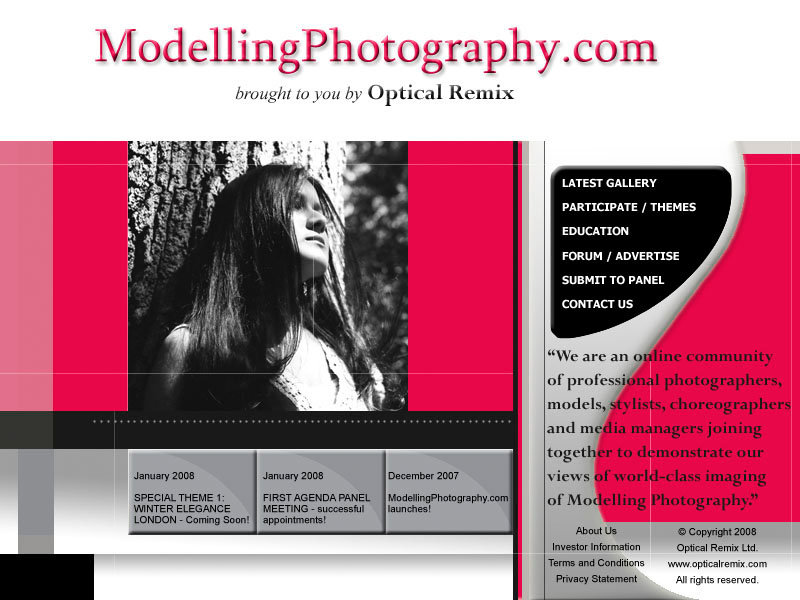 view our gallery contact us at modellingphotography.com submit items to our panel forums and advertising education in modelling photography participate and choose from themes our latest gallery submissions brought to you by Optical Remix welcome to modellingphotography.com privacy statement at modellingphotography.com terms and conditions at modellingphotography.com investor information for modellingphotography.com about us at modellingphotography.com www.opticalremix.com